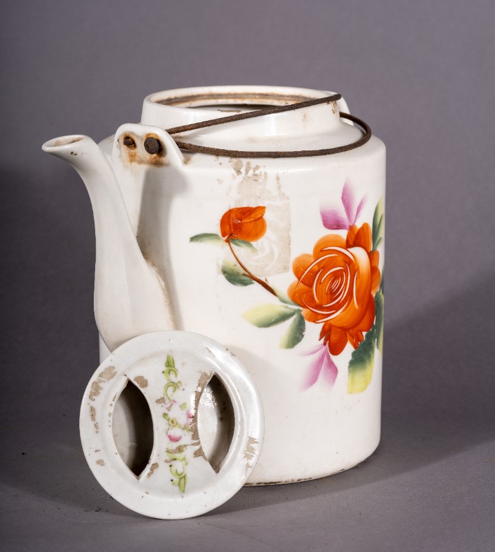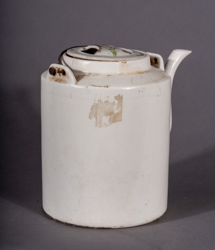 抗战时期,革命工作者在城川开展革命活动时使用过的白瓷印花茶壶,收藏于城川民族学院纪念馆。