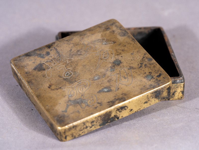 抗战时期,鄂托克旗城川民族学院老师使用过的黄铜墨盒,正面刻有“努力学习”字样。现收藏于城川民族学院纪念馆。