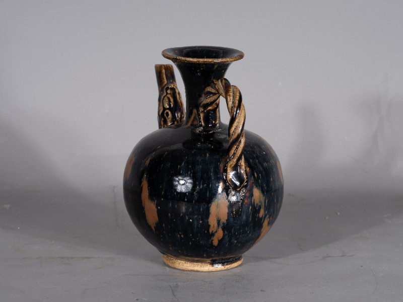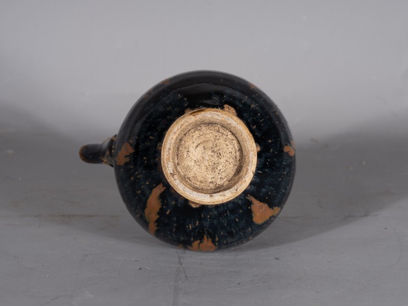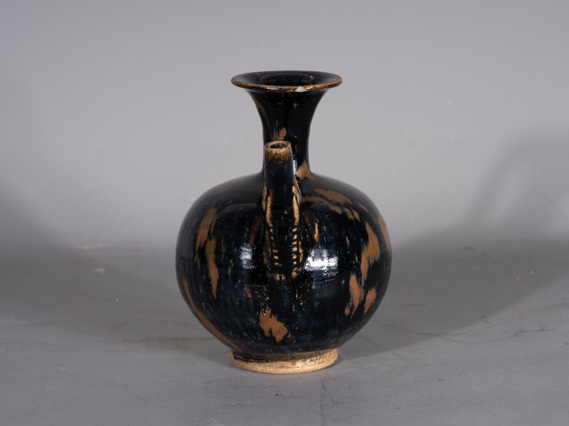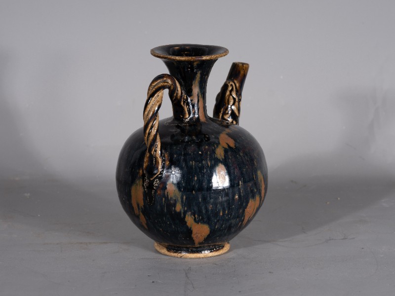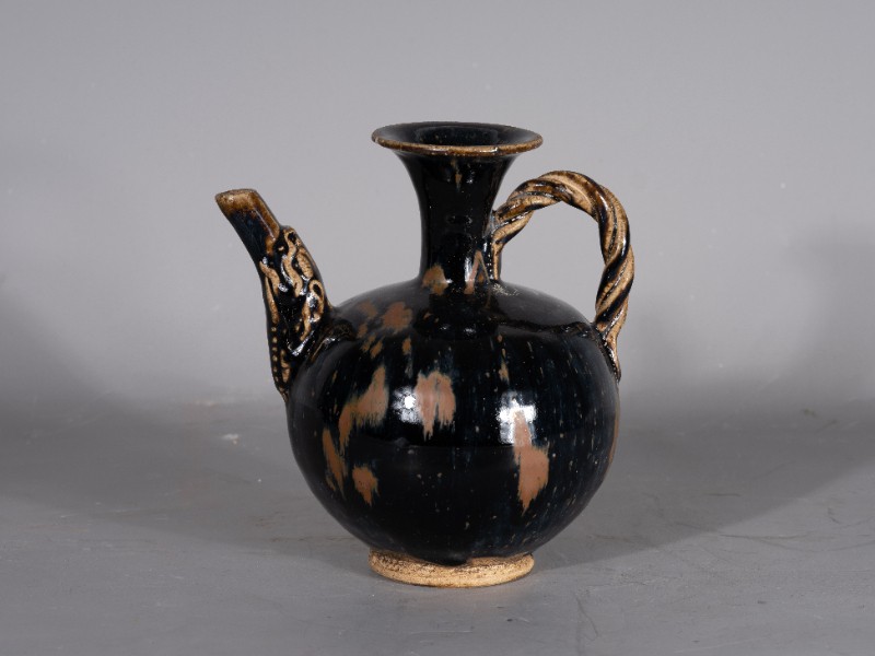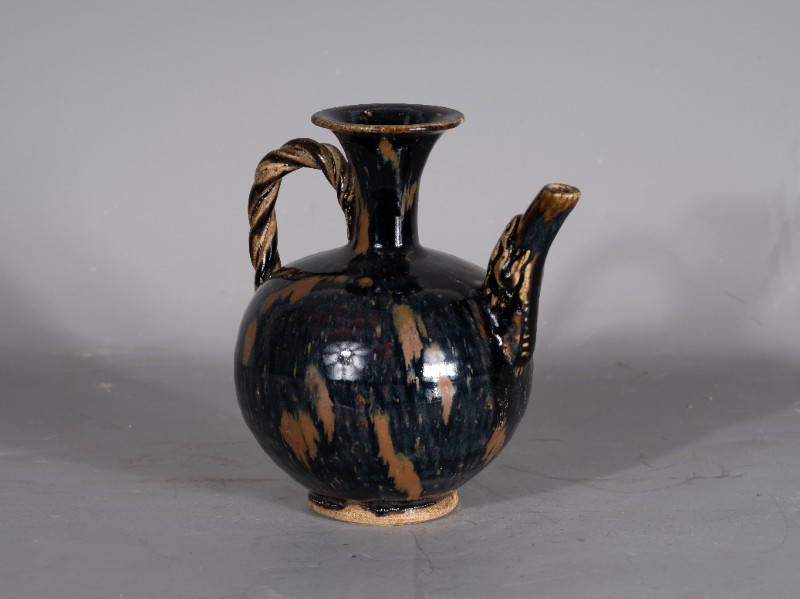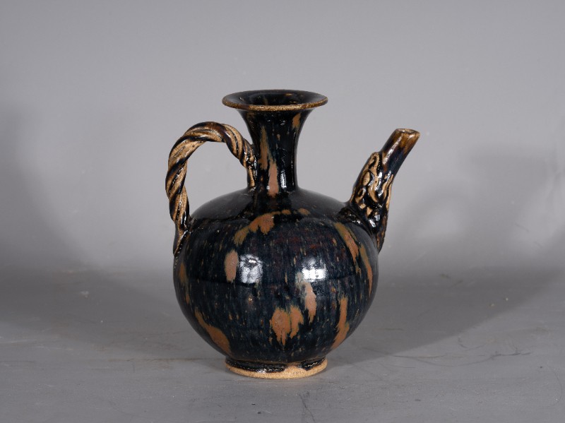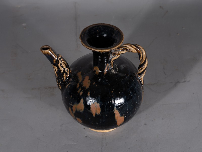 抗日战争时期,桃力民抗日自卫军在桃力民地区使用过的圆形喇叭口提梁黑釉酒壶,材质为黑釉瓷器,器型完整。现存于桃力民抗日根据地史实陈列馆。