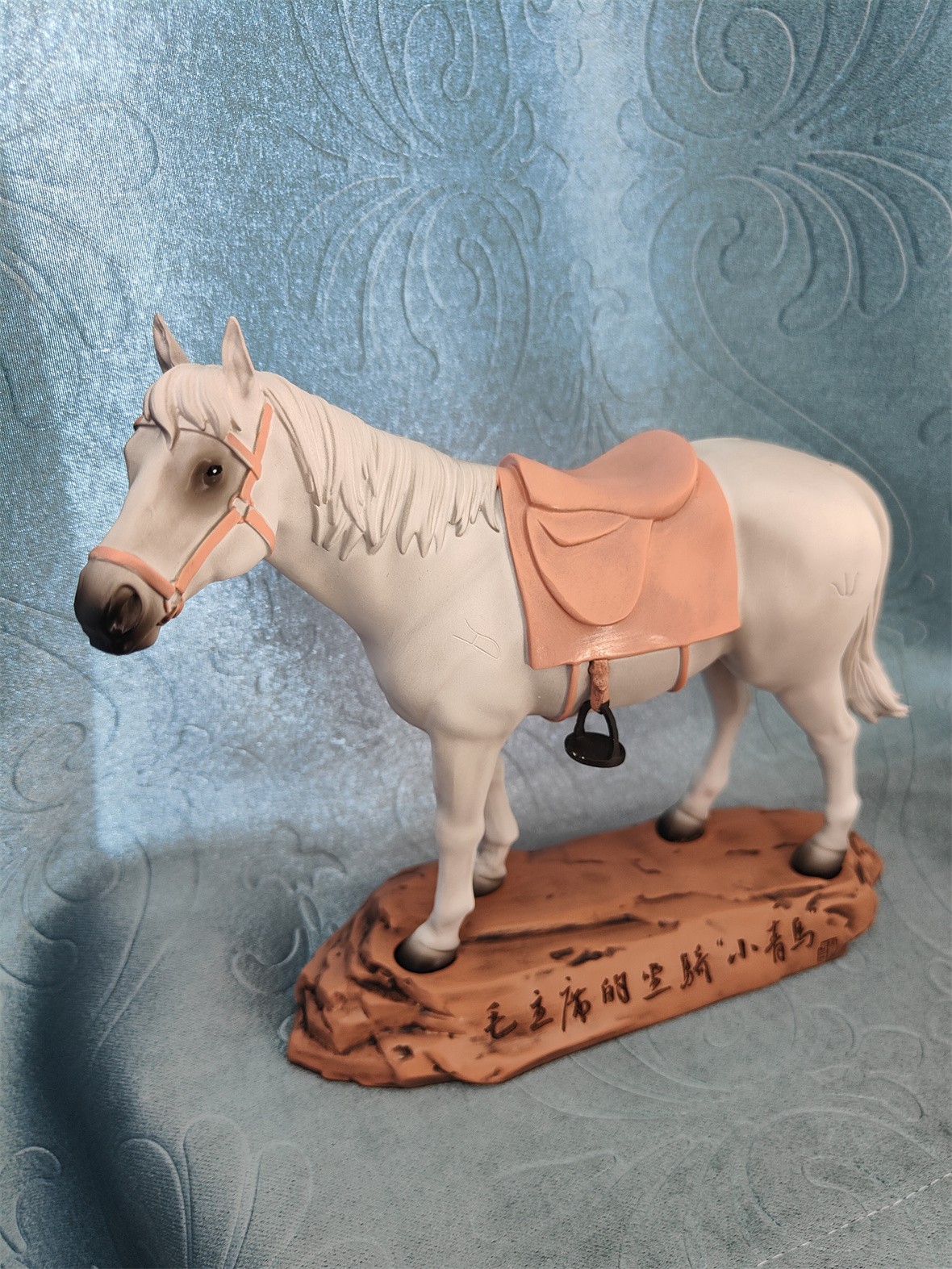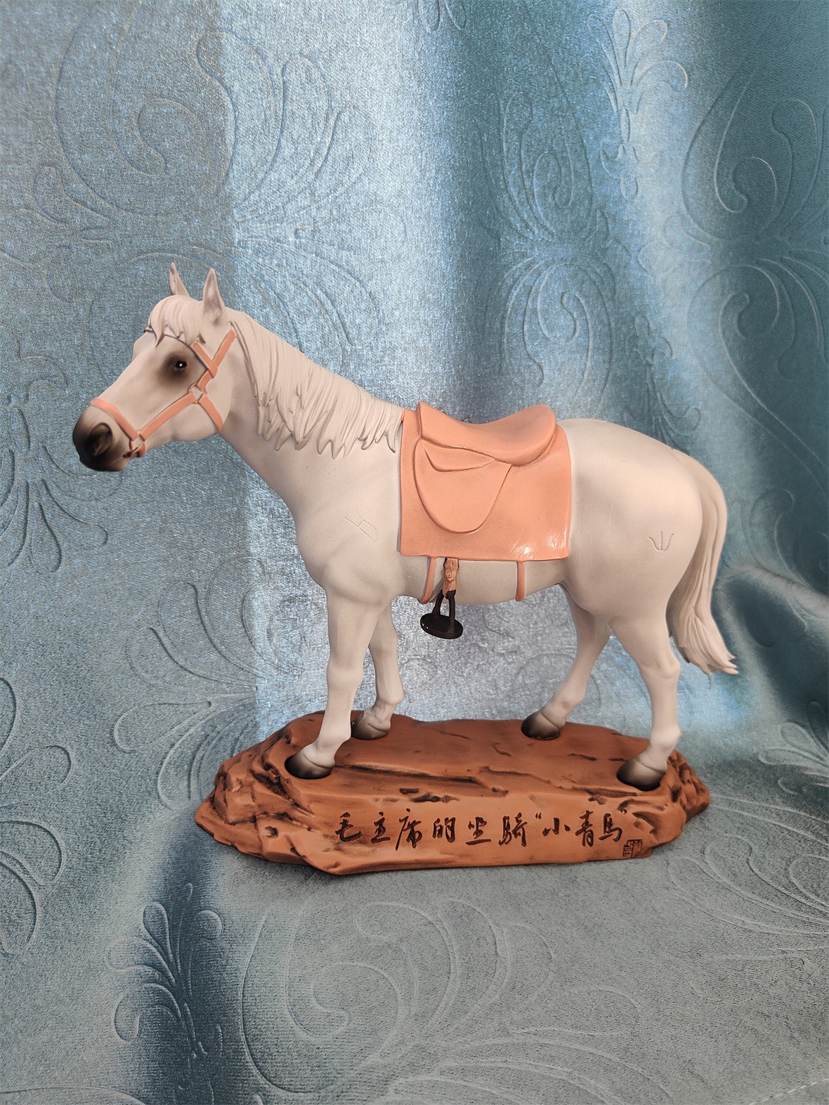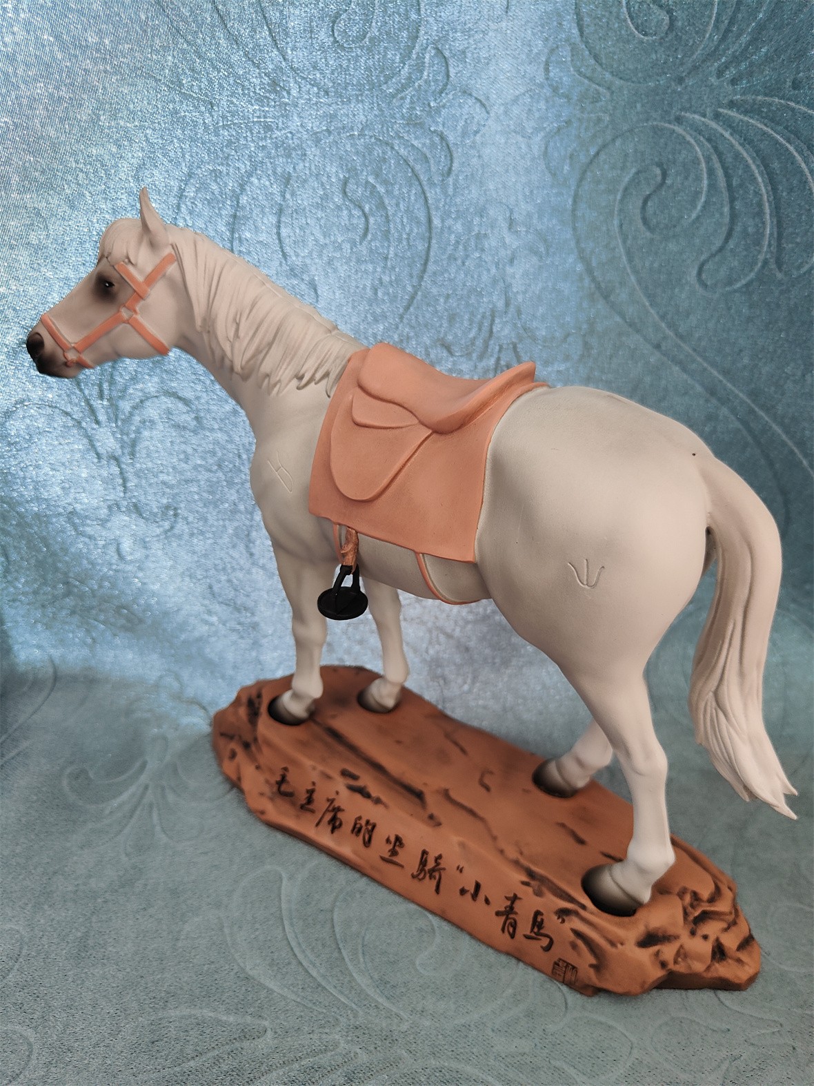 "毛主席的坐骑——小青马”在此背景下应运而生。该文创产品以中央红军长征胜利到达陕北后,乌审旗蒙古族牧民延安参观团赠送给毛泽东主席的"菊花长鬃青马"为原型,塑造站立在西北黄土高坡上的小青马形态,传递乌审马敦厚朴实、甘于奉献的品格。不仅如此,该产品更是通过马匹造型"以马喻马",艺术化延伸了"吃苦耐劳、一往无前,不达目的绝不罢休"的蒙古马精神。