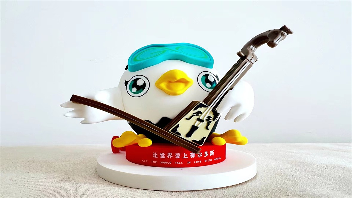 作品以国家宝藏、鄂尔多斯出土的国家一级文物“鹰顶金冠饰”为设计灵感,为文物的诸多元素赋予现代化的设计语言,打造出萌宠可爱、潮流多变的鄂尔多斯吉祥物,小金鹰手拉马头琴,既有民族特色,又兼具停车牌的新颖功能。吉祥物以拟人化的设计,增强了城市宣传的亲和力,是内蒙古城市IP的先行之举,更是鄂尔多斯展翅腾飞的美好愿望。