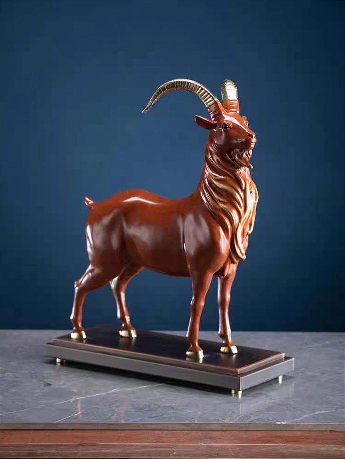 作品以鄂尔多斯著名山羊品种——阿尔巴斯山羊为原型,与国家工艺美术大师手工锻造铜艺完美结合,将阿尔巴斯山羊有发达的前额鬃和较长的下领须生动的体现出来,底座刻有的“羊煤土气”,更突显了鄂尔多斯当地丰富的资源。鄂珍品牌将努力为鄂尔多斯城市文化高品质、高品位和高质量发展做出新的更大贡献。