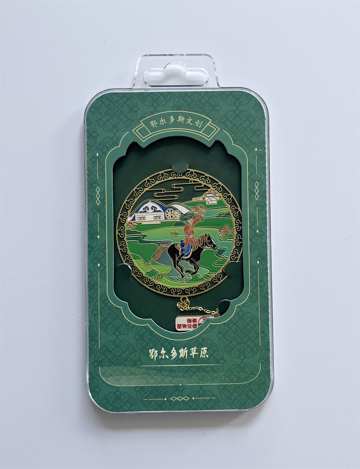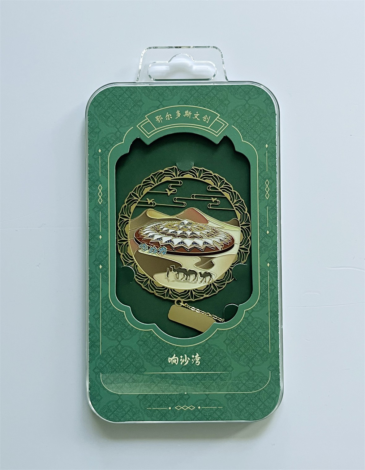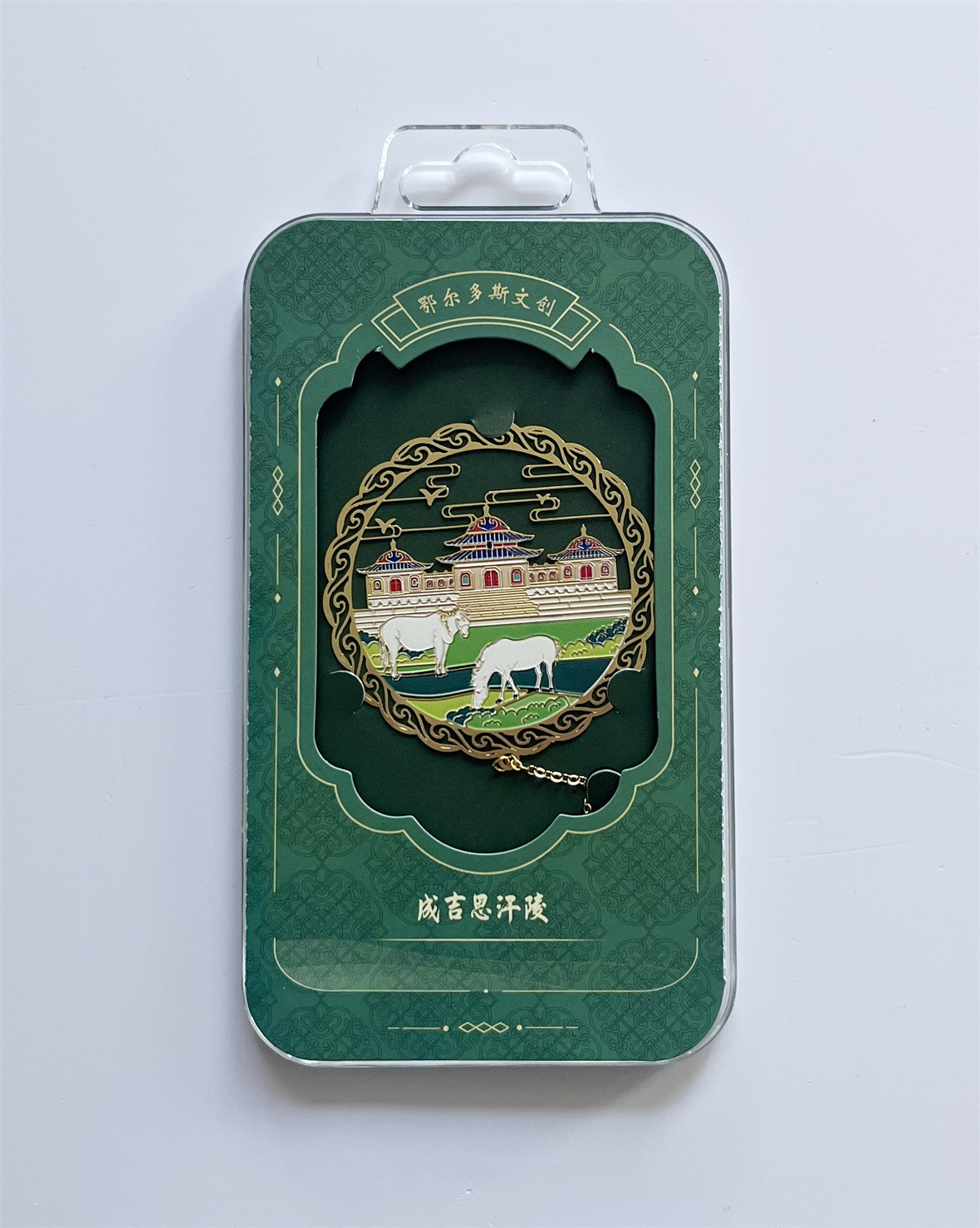 鄂尔多斯拥有丰富的历史文化,灿烂的民族文化和独具特色的地域文化资源,依托成吉思汗陵、响沙湾、黄河大峡谷等丰富的旅游资源以及鄂尔多斯大剧院、文化馆、图书馆等独特的文化建筑,开发设计一套具有鄂尔多斯地方特色的金属书签,共10枚。