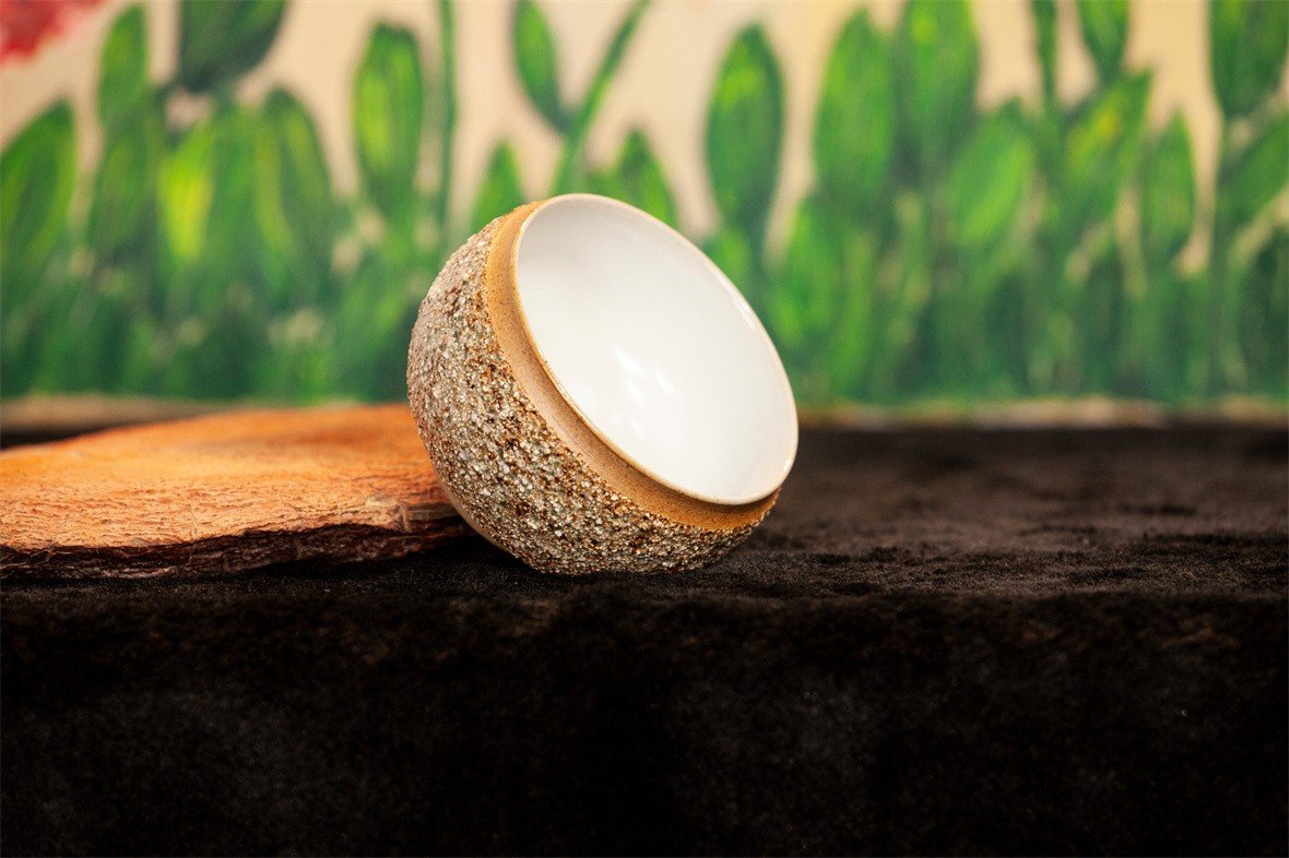 创作思路:利用独具特色的乌审沙进行装饰创作,使其艺术化,陶泥与沙碰撞出原始的质朴和形态的层次,粒粒分明的砂石形成色彩交杂,仿佛感受到这片土地的纹理。