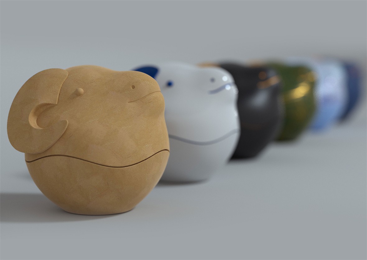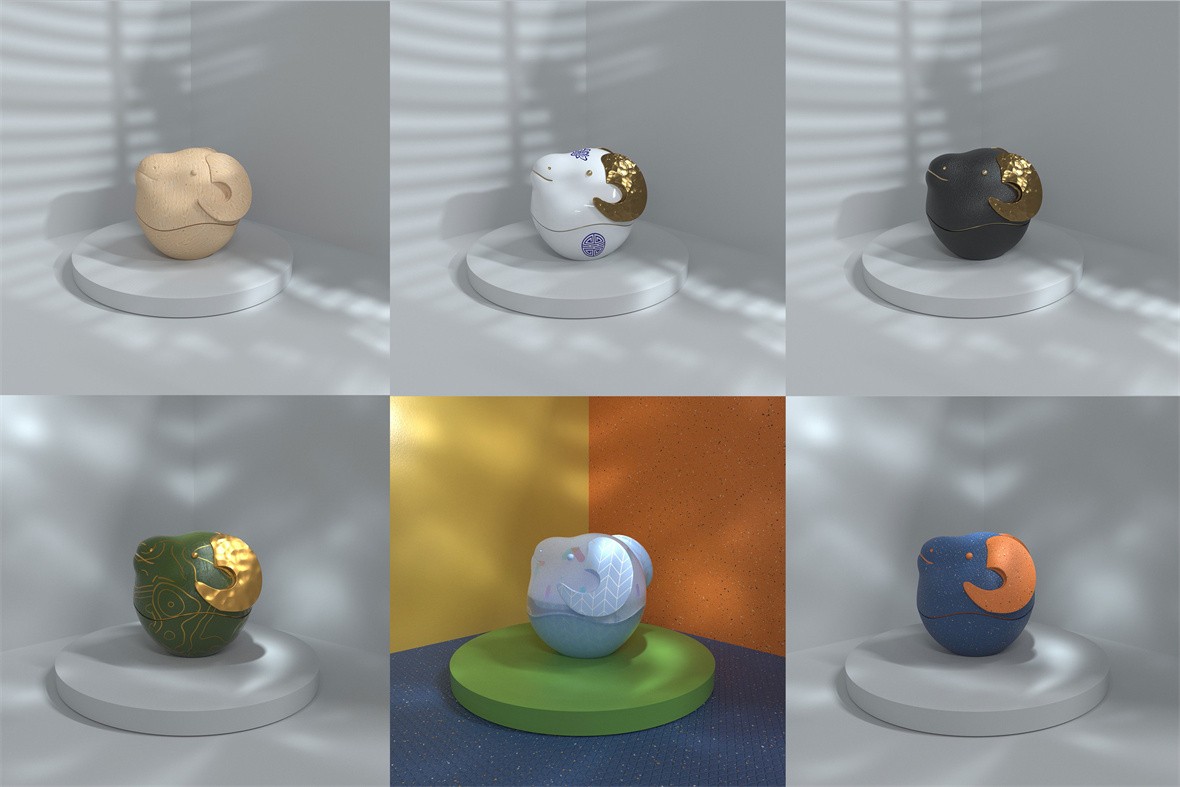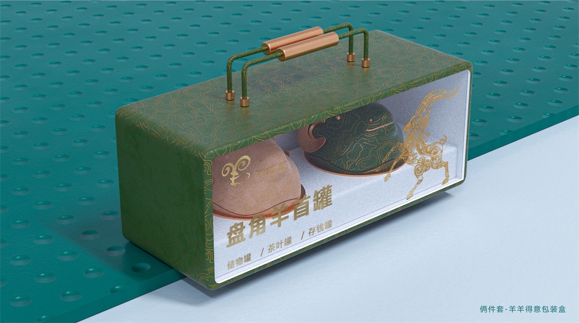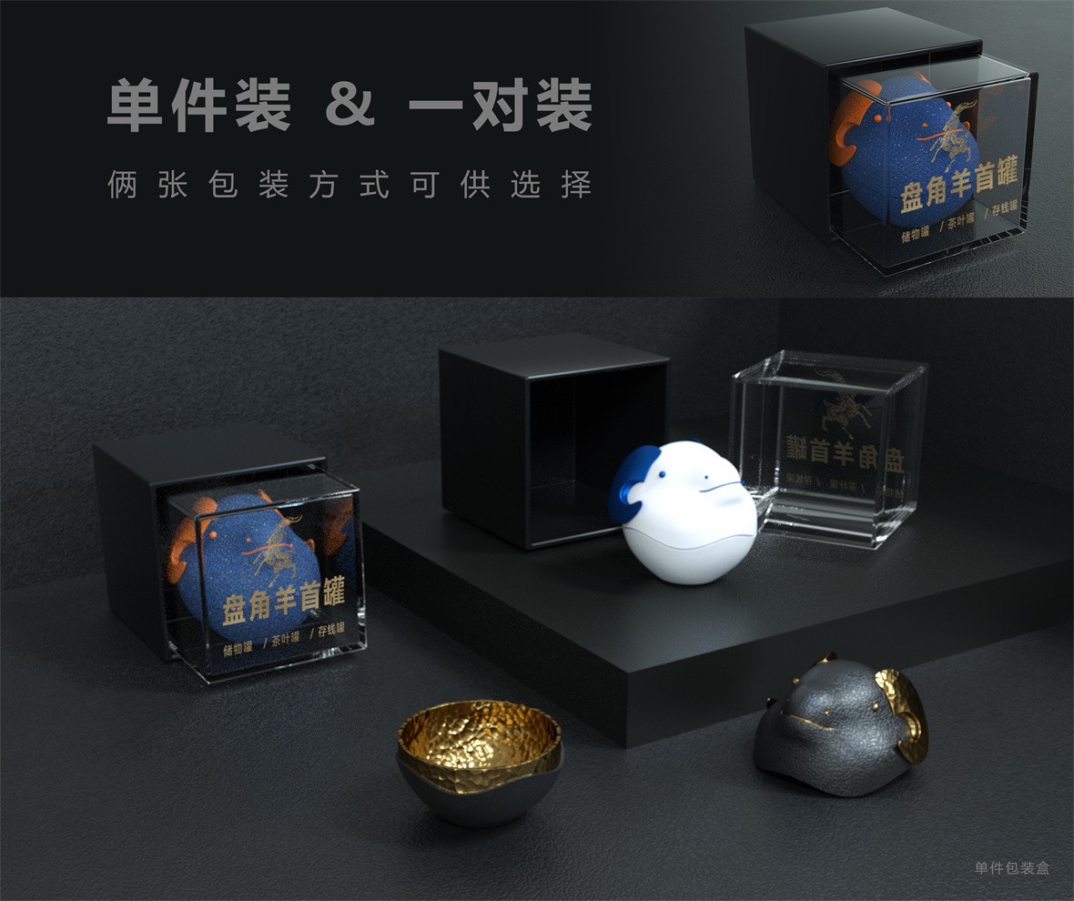 设计理念:盘角羊首罐是一款颠覆传统感官的储物罐,兼具出色的储物功能、可爱Q版的外观以及丰富的样式可供选择。天地盖的开合方式,轻松置物,为现代人创造了新的储物方式与乐趣。